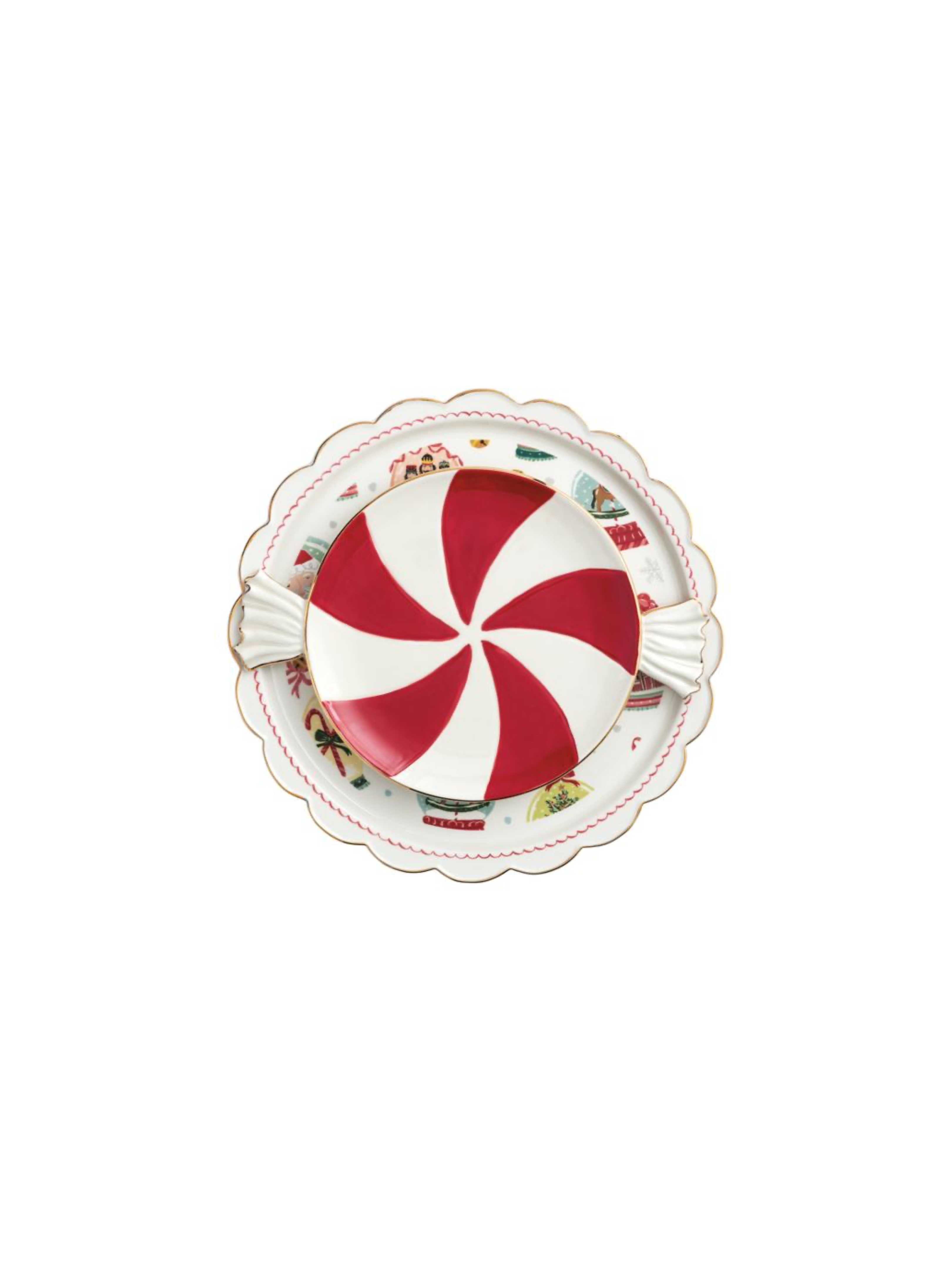 The small platter measures 8" x 11 1/4", ideal for serving a variety of treats, while the large 12" diameter platter provides ample space for an assortment of candies, cookies, or appetizers.