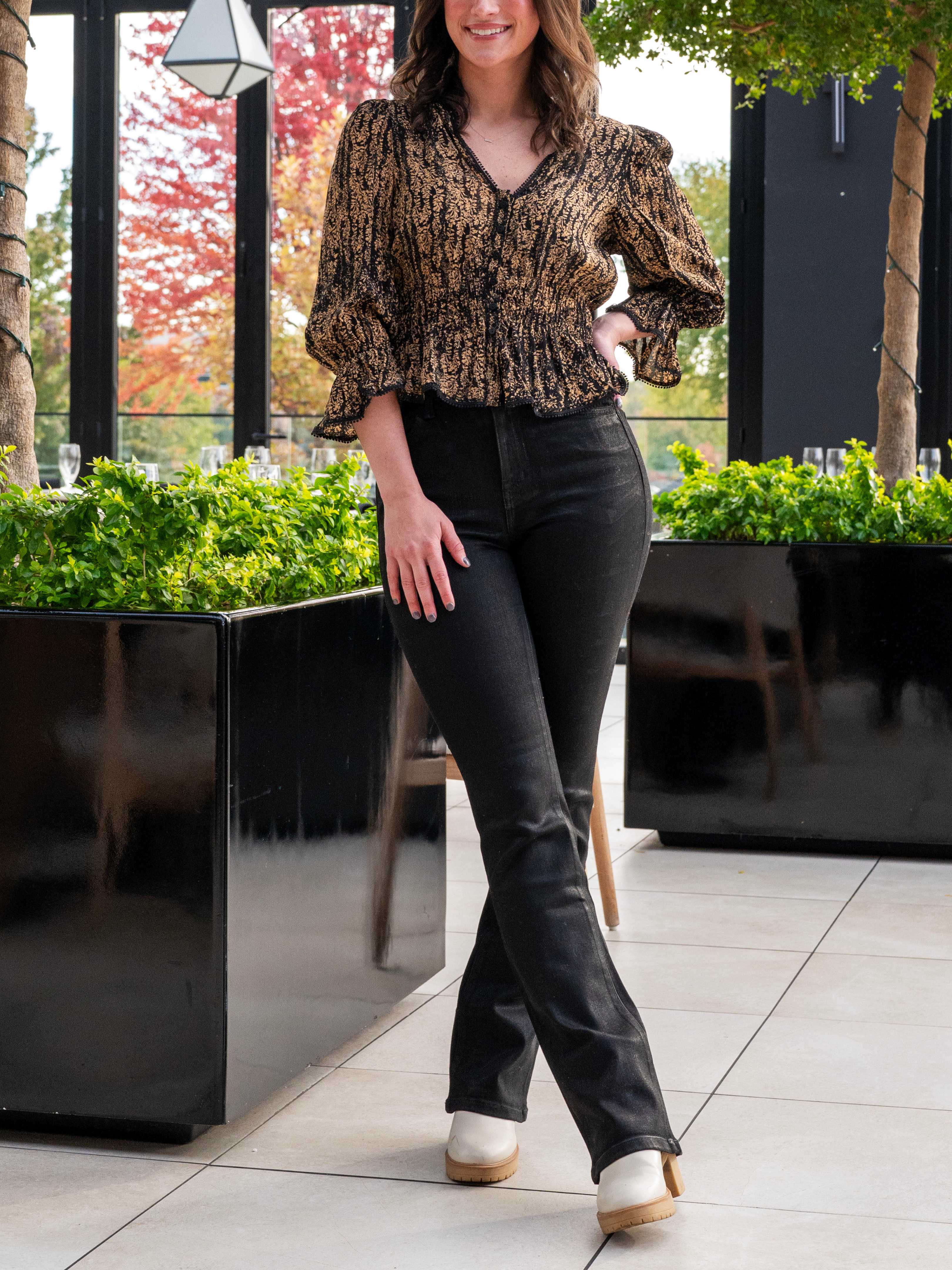 - This Flying Monkey mid-rise full length black bootcut sits just above the hip, is slim through the hip and thigh, and features a classic, bootcut opening with a finished hem. Comfortable stretchy fabric for the perfect fit.