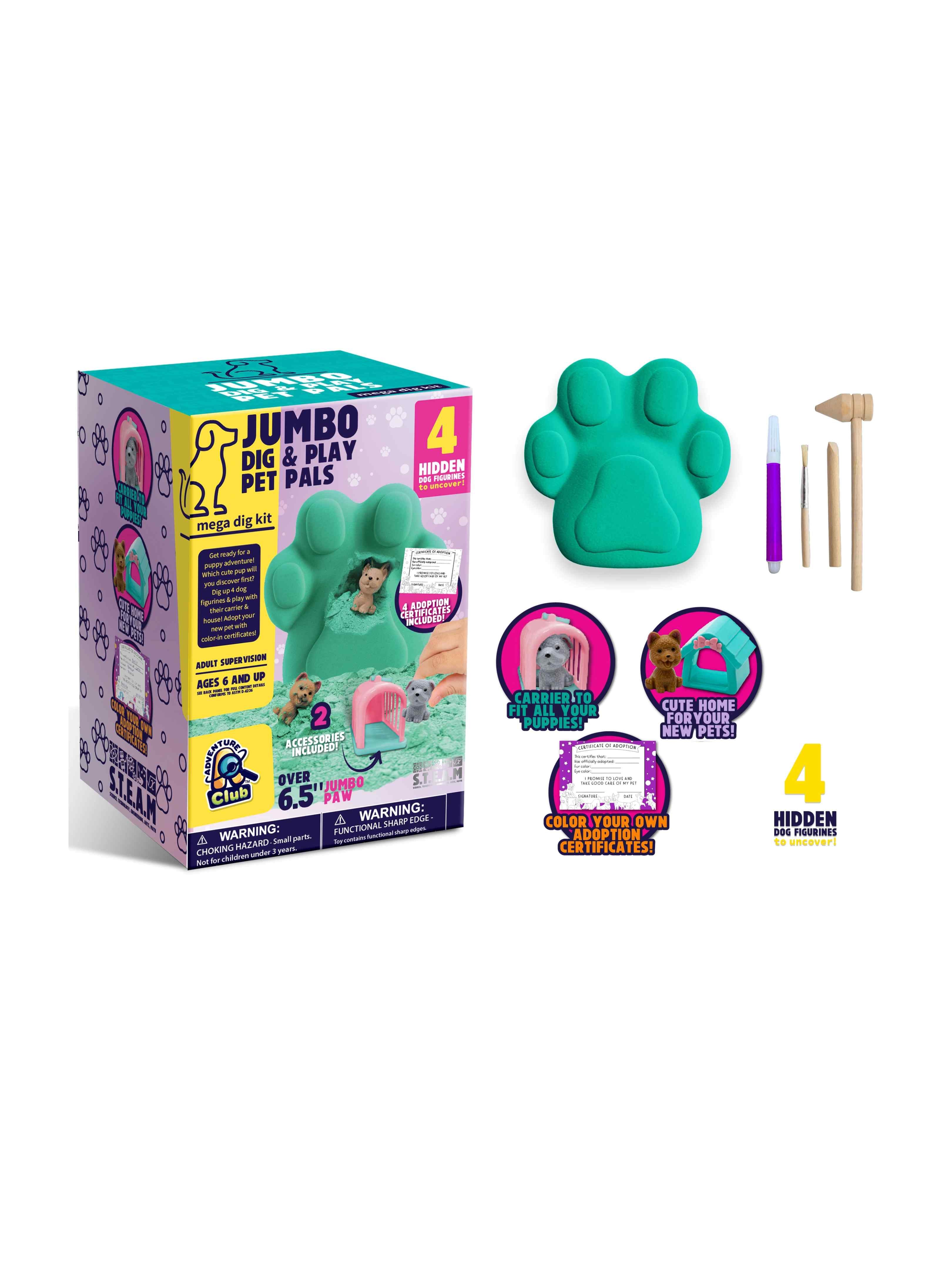 Help find all your animal friends in this Jumbo Pet Dig kit. Kit includes plaster dig brick with hidden animals inside. Ages 6+