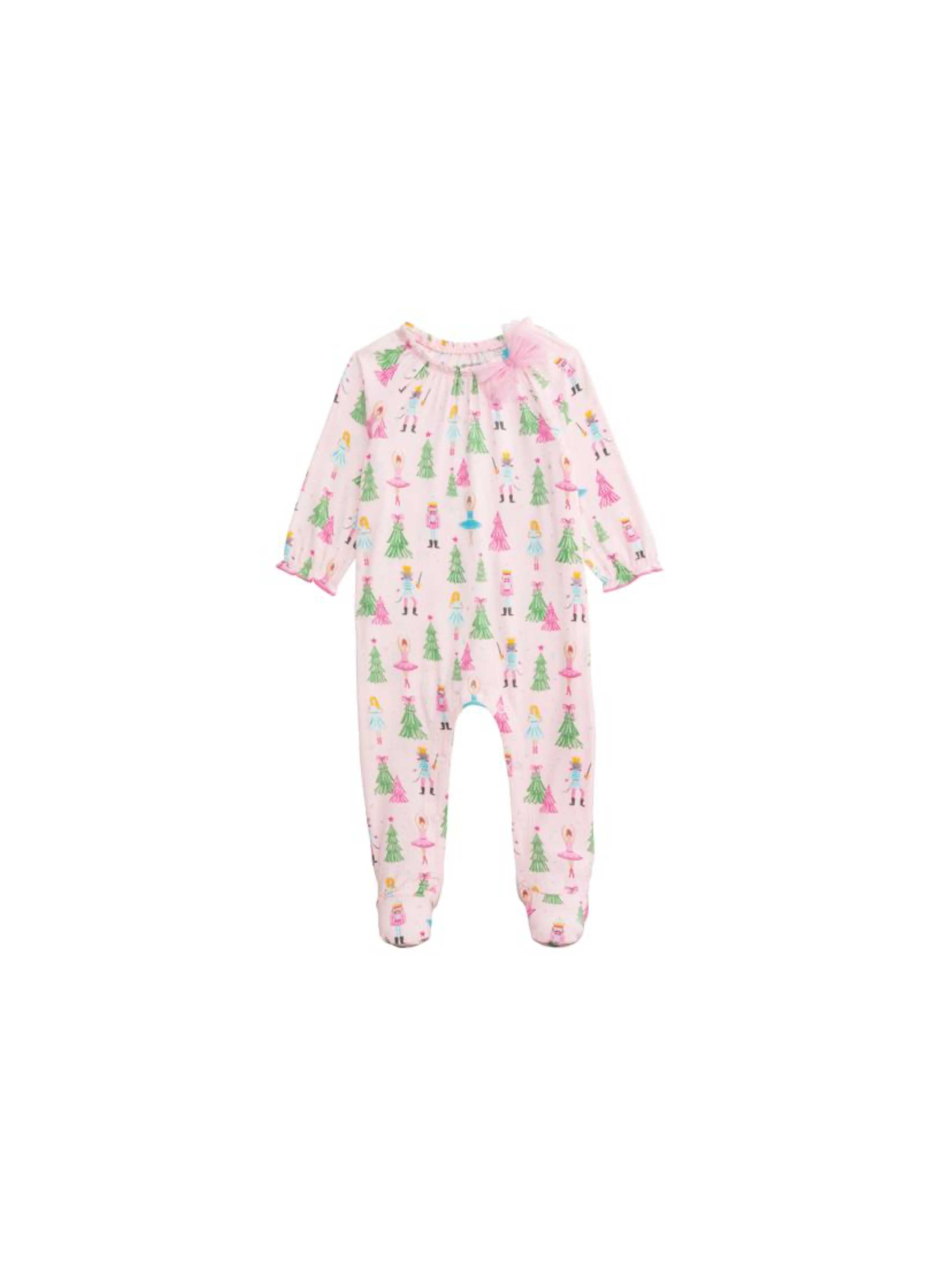 The Nutcracker Baby Sleeper is a charming and cozy addition to your little one's wardrobe. Crafted from a luxurious blend of 96% viscose made from bamboo and 4% spandex, this footed sleeper offers a soft and gentle touch against delicate skin. The knit bamboo fabric ensures breathability and comfort, making it perfect for your baby's sensitive skin.