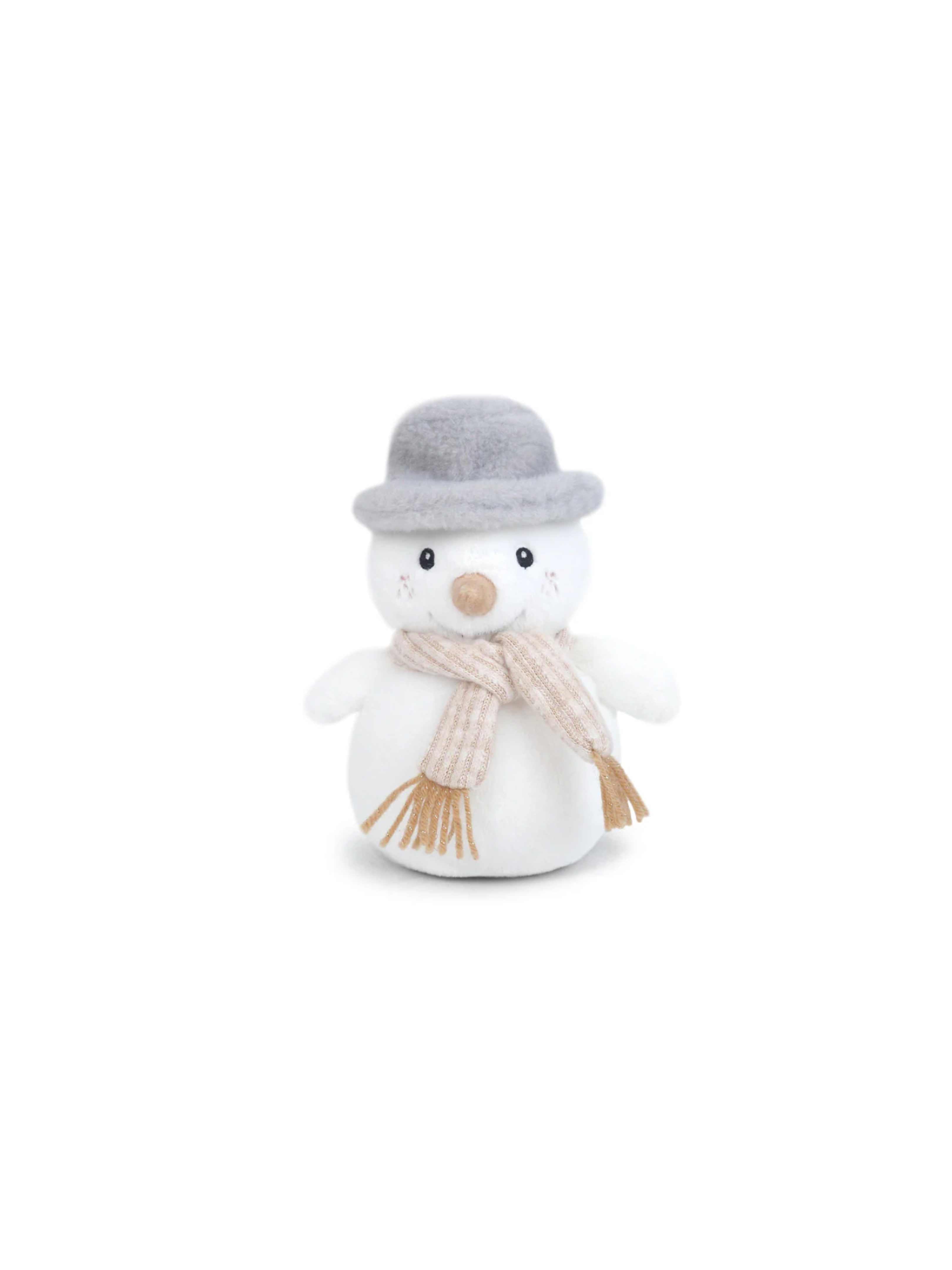 With his dapper grey hat, cozy scarf, and rosy-cheeked charm, he's ready to bring frosty fun to your celebrations.