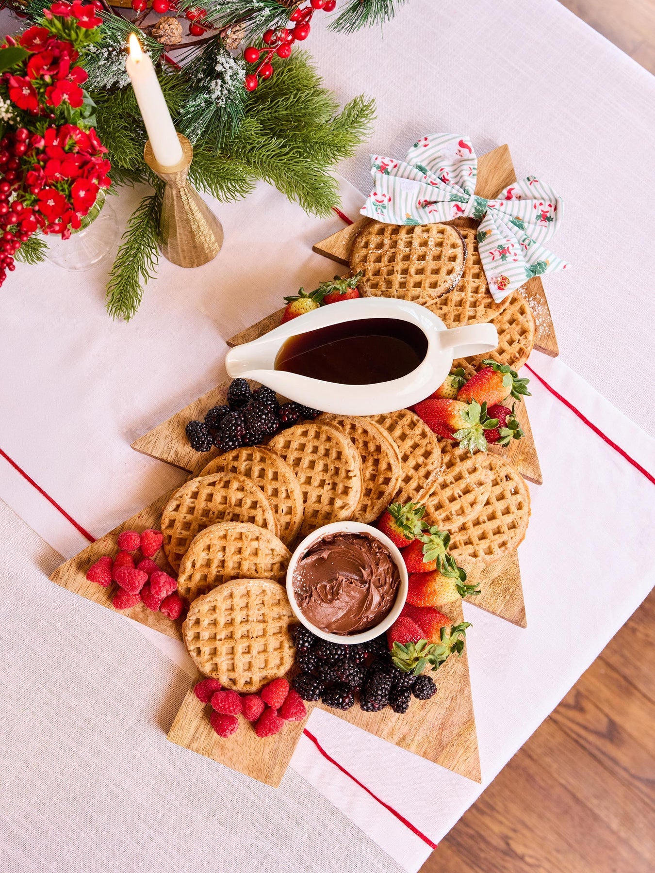 Make a bold holiday statement with our two-foot tree wood board. Perfect for serving, prepping, or displaying festive treats, this spacious board features an inlaid magnet that lets you easily attach and remove our charming seasonal bows for a customizable, festive touch. A must-have centerpiece for all your holiday gatherings!