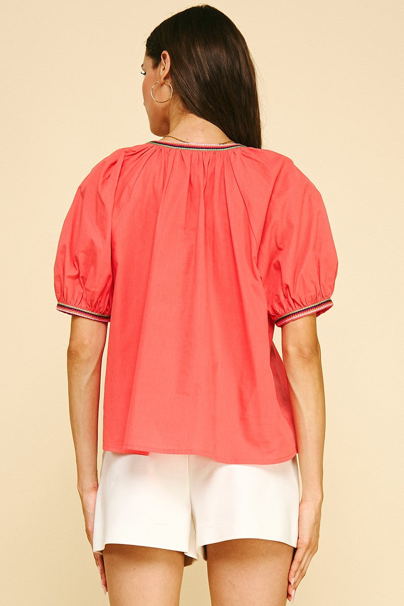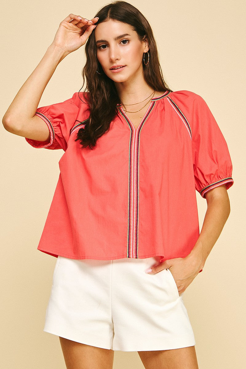 Contrast Stitch Top - Tomato