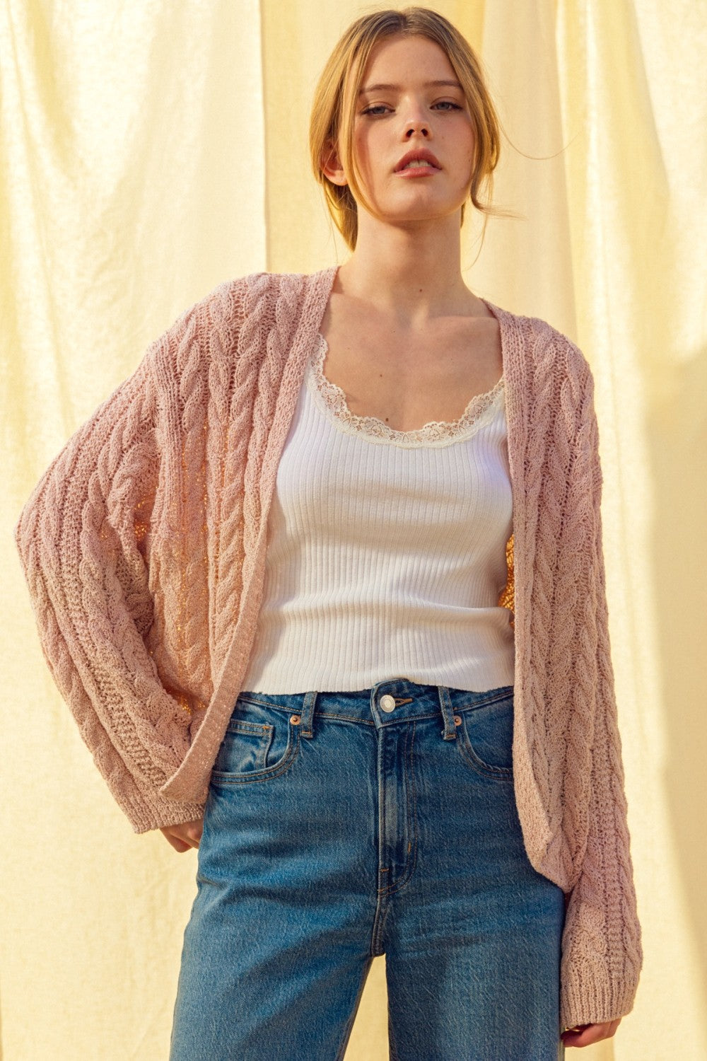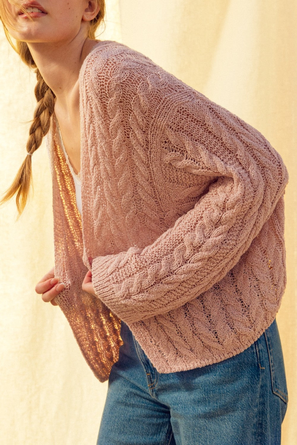 Cable Knitted Cardi Pink