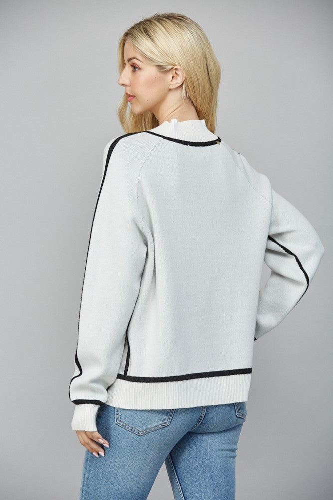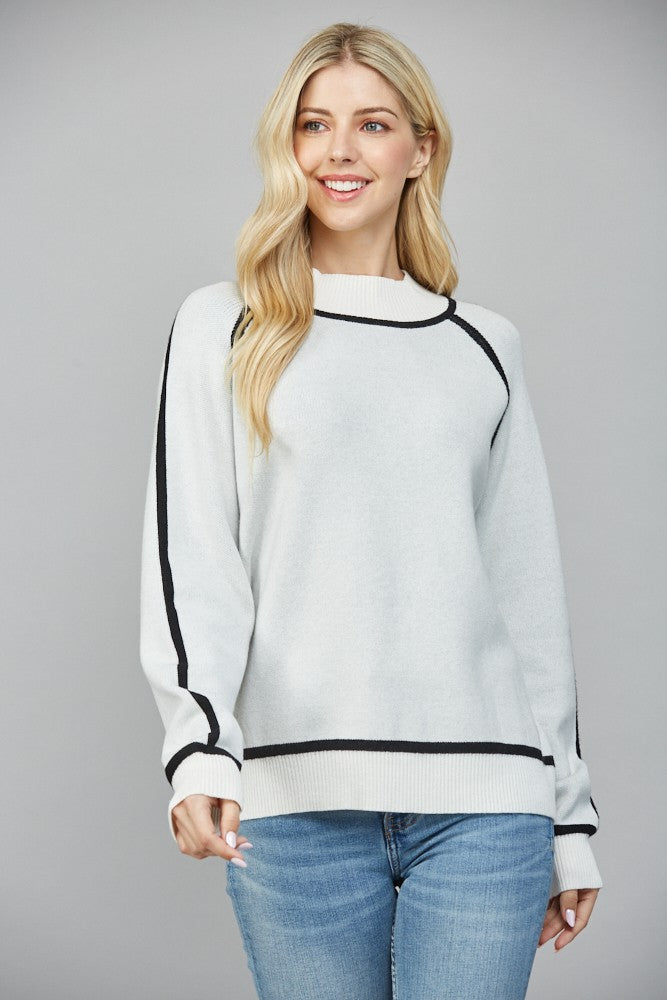 Contrast seam mock neck sweater