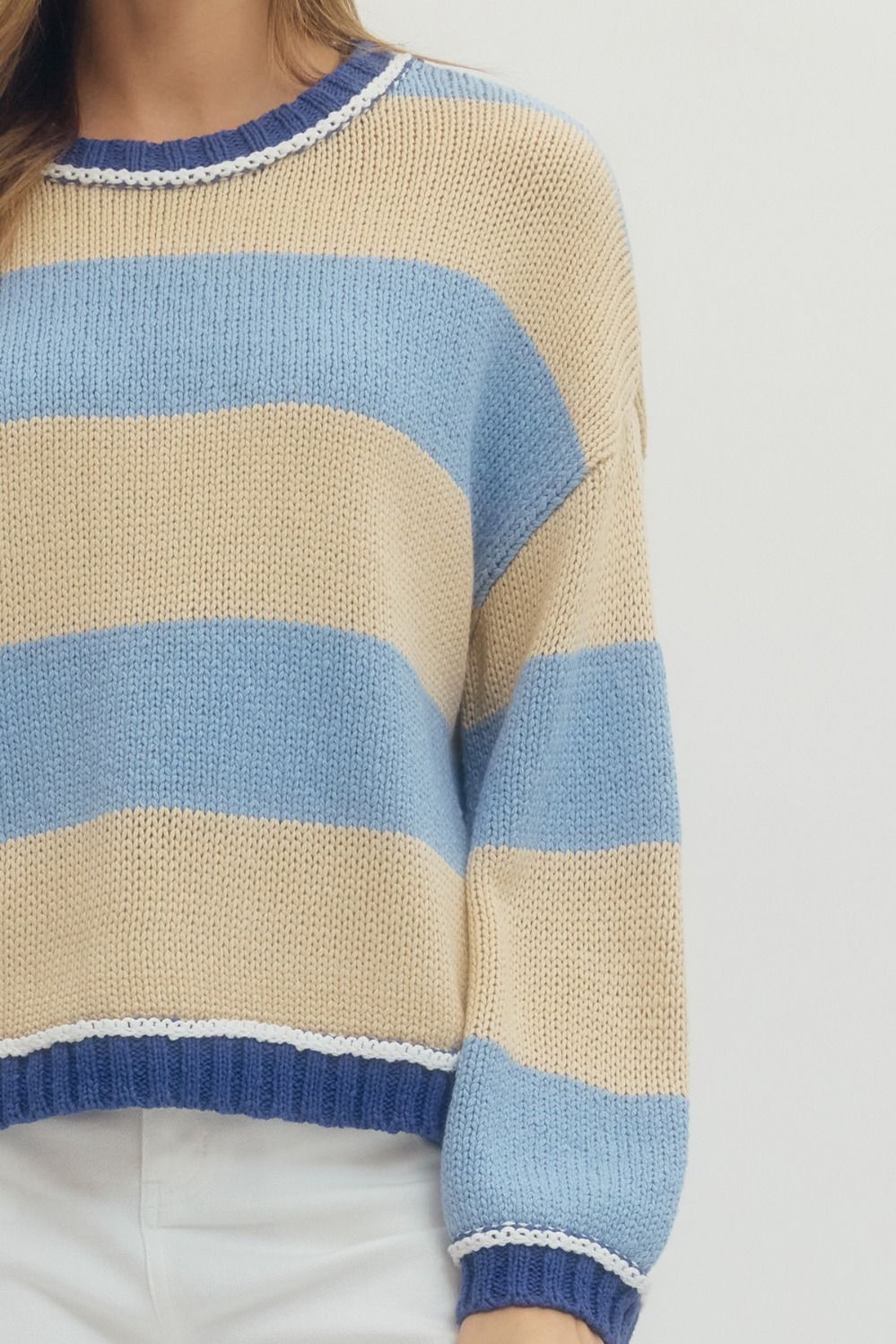 • Multicolor Long Sleeve Knit Top Featuring Bold Stripe Pattern.