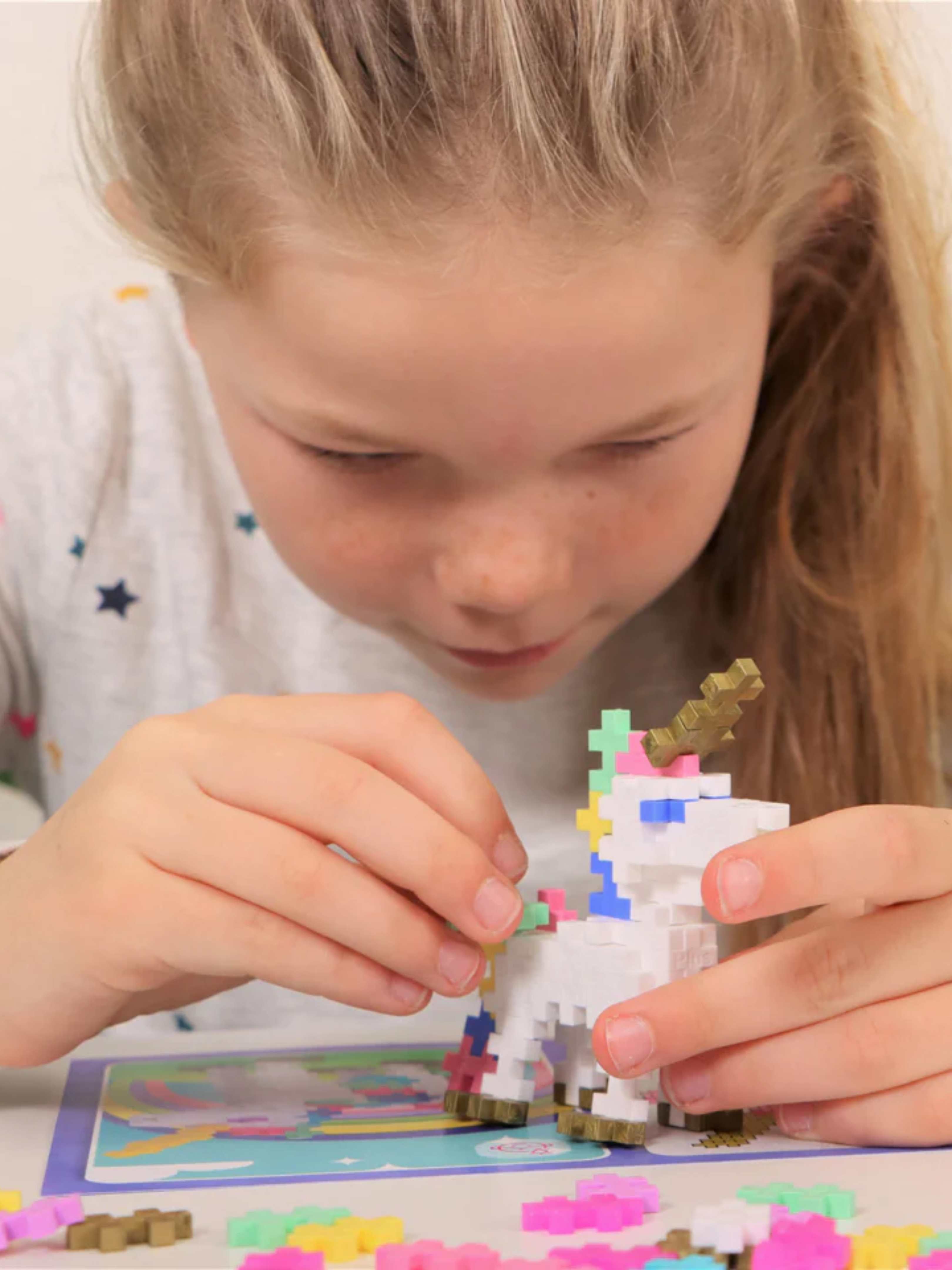 The Learn To Build Unicorns set is a great way to get started with Plus-Plus. Kids will learn to create in 2D or 3D, encouraging open-ended, creative play. It’s a perfect STEM toy to develop fine motor skills, focus and patience.