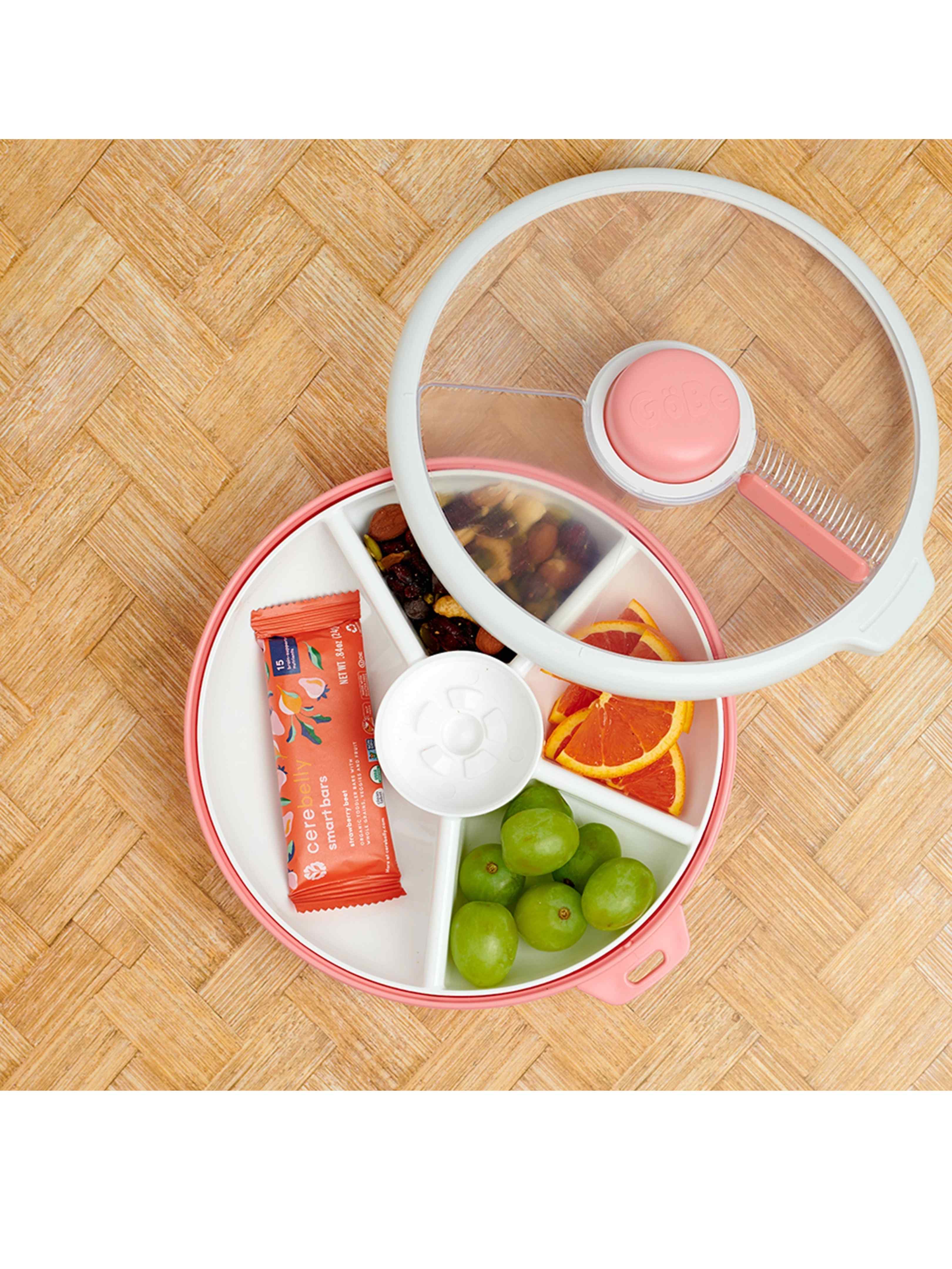 The GoBe Small Snack Spinner Flip is the only spill resistant snack container that allows your child to choose between five different snacks at once! With the push of a button, your child can jump from snack-to-snack, all while reducing spills and mess! More snacking variety for them, less mess for you.  Perfect gift for all occasions including Easter, Christmas, birthday parties and many more.  Great for travel and airplanes.