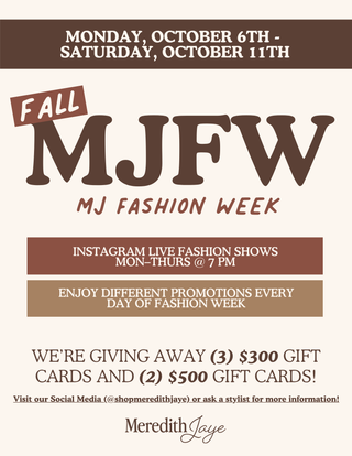 🚨 It’s almost here… Meredith Jaye Fashion Week is kicking off NEXT WEEK! 🚨
